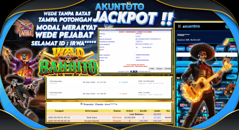 AKUNTOTO JACKPOT SLOT WILD BANDITO Rp 18.400.000,- LUNAS