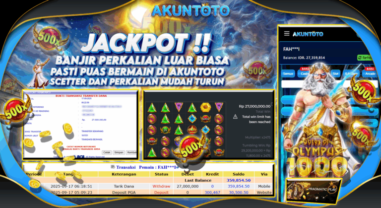 AKUNTOTO JACKPOT GATES OF OLYMPUS 1000 Rp 27.000.000 RABU 17 SEPTEMBER 2025 Selamat kepada User id : FAH***I Telah berhasil mendapatkan kemenangan besar pada permainanGATES OF OLYMPUS 1000 5 – 10 menit pihak AKUNTOTO sudah melakukan transfer kepada pemilik User id dan dana sudah dapat di cairkan oleh pemenang. Bukti pembayaran yang kami berikan merupakan…