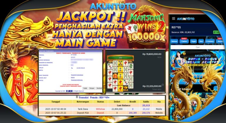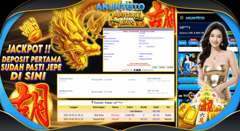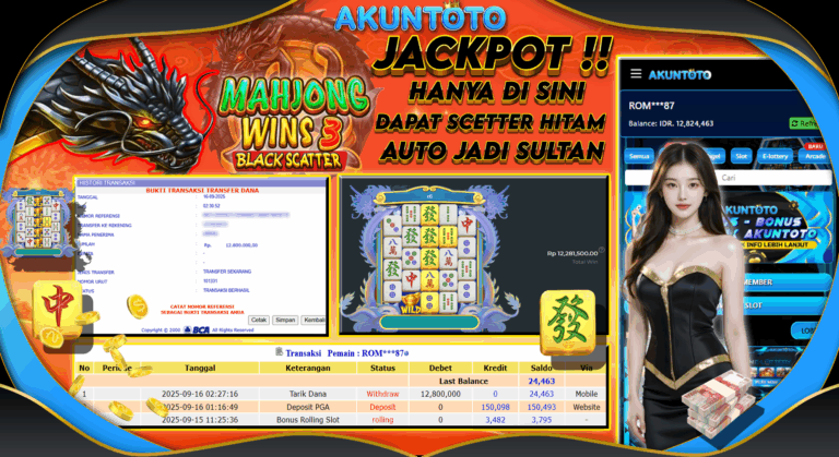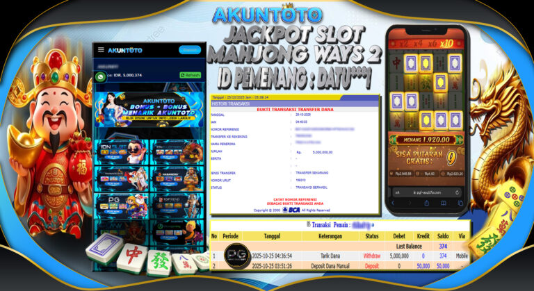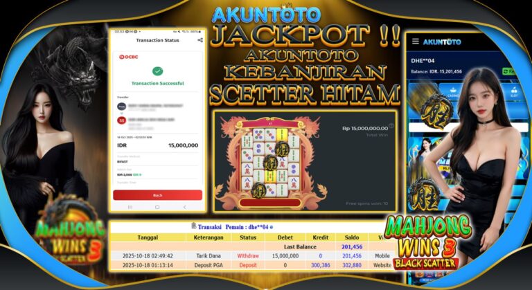 AKUNTOTO JACKPOT SLOT MAHJONG WINS 3 BLACK SCETTER Rp 15.900.000 RABU 01 OKTOBER 2025 Selamat kepada User id : ADU** Telah berhasil mendapatkan kemenangan besar pada permainanSLOT MAHJONG WINS 3 BLACK SCETTER 5 – 10 menit pihak AKUNTOTO sudah melakukan transfer kepada pemilik User id dan dana sudah dapat di cairkan oleh pemenang. Bukti pembayaran…