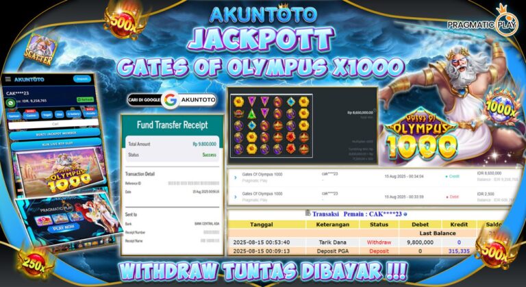 AKUNTOTO JACKPOT SLOT GATES OF OLYMPUS 1000 Rp18.000.000 MINGGU 02 NOVEMBER 2025 Selamat kepada User id PAI***33Telah berhasil mendapatkan kemenangan besar pada permainanGATES OF OLYMPUS 1000 5 – 10 menit pihak AKUNTOTO sudah melakukan transfer kepada pemilik User id dan dana sudah dapat di cairkan oleh pemenang. Bukti pembayaran yang kami berikan merupakan bukti pembayaran…