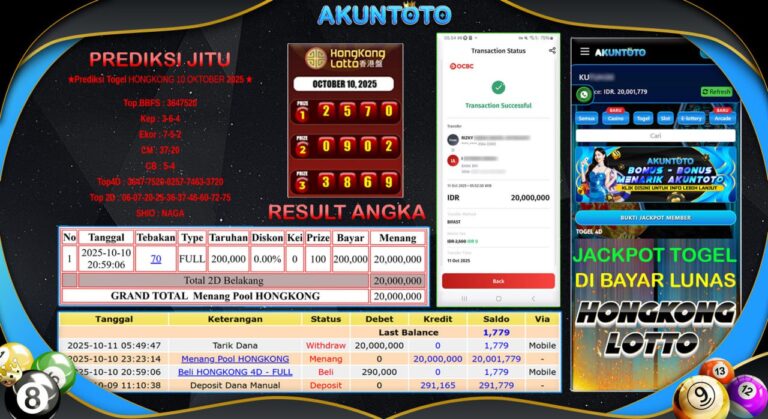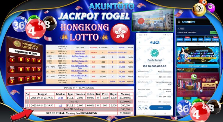 AKUNTOTO JACKPOT TOGEL HONGKONG LOTTO Rp 20.000.000,- LUNAS