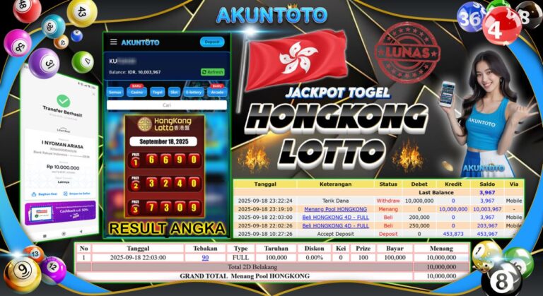 AKUNTOTO JACKPOT TOGEL HONGKONG LOTTO Rp 10.000.000 JUMAT 19 SEPTEMBER 2025 Selamat kepada User id : KU****** Telah berhasil mendapatkan kemenangan besar pada permainanTOGEL HONGKONG LOTTO 5 – 10 menit pihak AKUNTOTO sudah melakukan transfer kepada pemilik User id dan dana sudah dapat di cairkan oleh pemenang. Bukti pembayaran yang kami berikan merupakan bukti pembayaran…