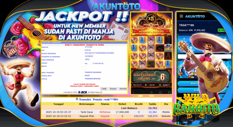 AKUNTOTO JACKPOT SLOT WILD BANDITO Rp17.900.000 MINGGU 19 OKTOBER 2025 Selamat kepada User id : TRAK***88 Telah berhasil mendapatkan kemenangan besar pada permainan SLOT WILD BANDITO 5 – 10 menit pihak AKUNTOTO sudah melakukan transfer kepada pemilik User id dan dana sudah dapat di cairkan oleh pemenang. Bukti pembayaran yang kami berikan merupakan bukti pembayaran…