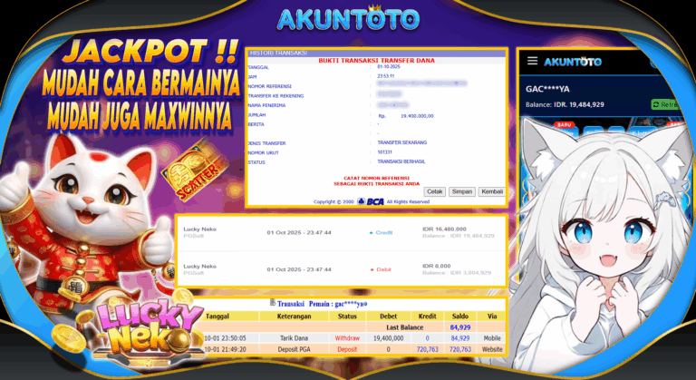 AKUNTOTO JACKPOT SLOT LUCKY NEKO Rp 19.400.000,- LUNAS