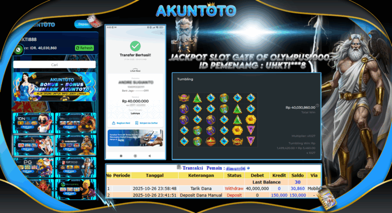 AKUNTOTO JACKPOT SLOT GATES OF OLYMPUS 1000 Rp20.000.000 RABU 05 NOVEMBER 2025 Selamat kepada User id MEGA***7Telah berhasil mendapatkan kemenangan besar pada permainanGATES OF OLYMPUS 1000 5 – 10 menit pihak AKUNTOTO sudah melakukan transfer kepada pemilik User id dan dana sudah dapat di cairkan oleh pemenang. Bukti pembayaran yang kami berikan merupakan bukti pembayaran…