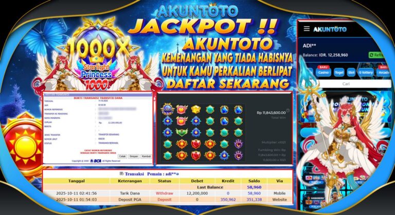 AKUNTOTO JACKPOT SLOT STARLIGHT PRINCESS 1000 Rp 12.200.000 SABTU 11 OKTOBER 2025 Selamat kepada User id : ADI** Telah berhasil mendapatkan kemenangan besar pada permainanSTARLIGHT PRINCESS 1000 5 – 10 menit pihak AKUNTOTO sudah melakukan transfer kepada pemilik User id dan dana sudah dapat di cairkan oleh pemenang. Bukti pembayaran yang kami berikan merupakan bukti…